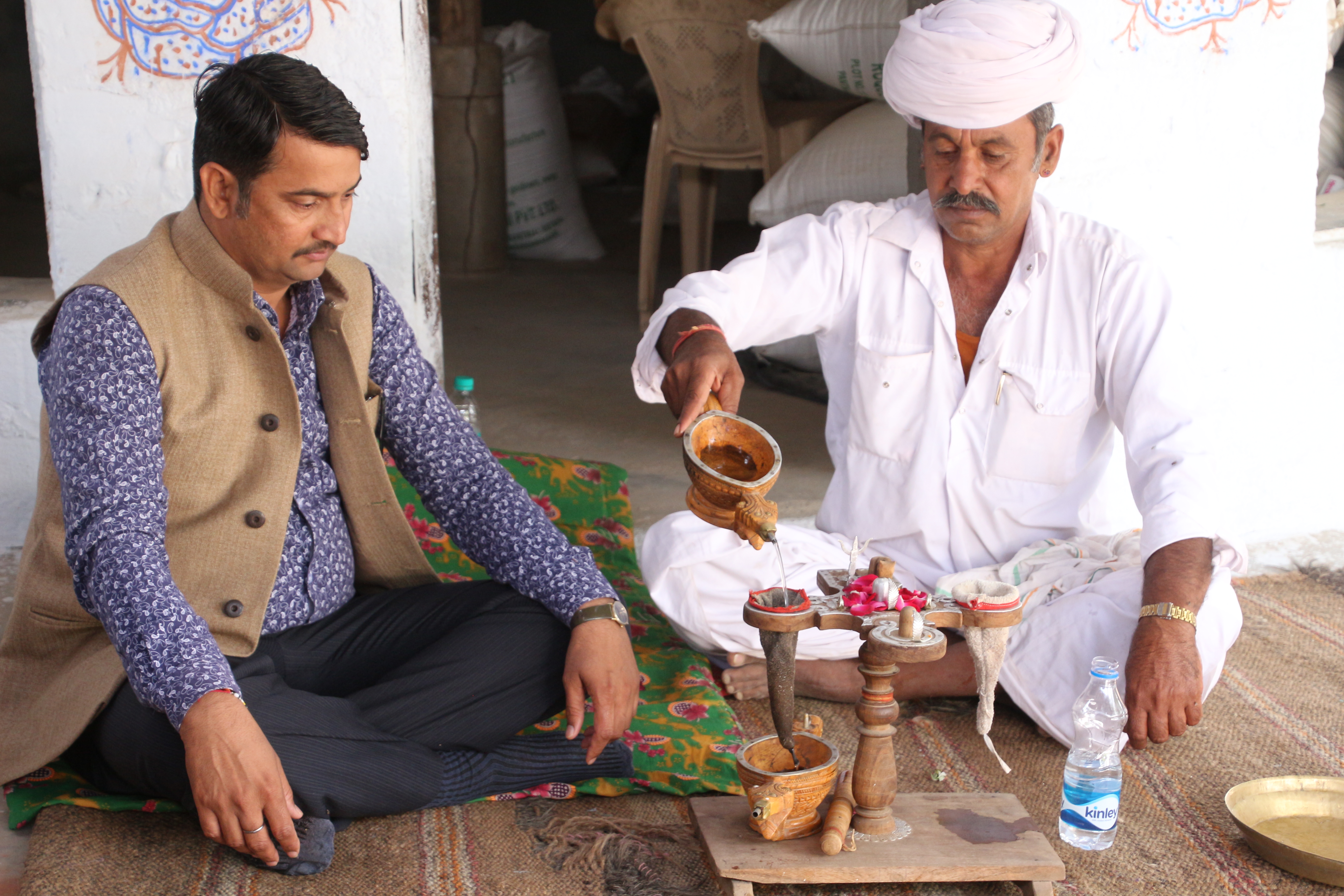 We visited the home of a master potter. His family all worked there, but clearly deferred to the master of the house. They created fun trinkets for tourists, including small authentic oil lamps. But another large part of their inventory was clay water containers that keep water cool even in the boiling Rajasthan climate.